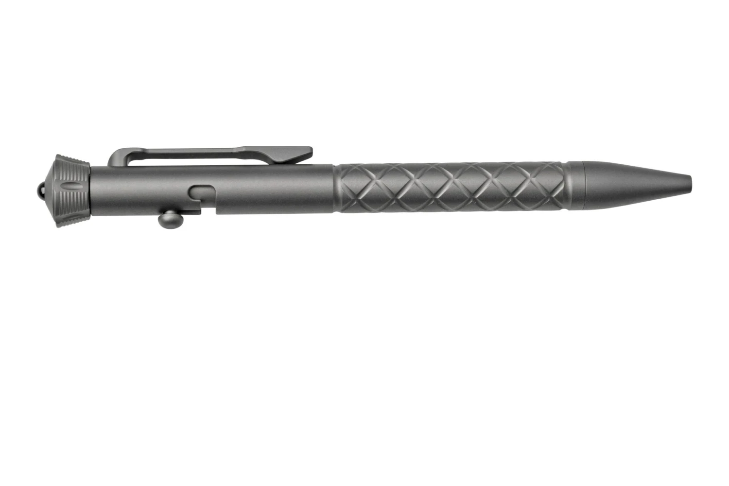 Der Civivi Coronet ist ein schöner EDC-Stift. Es wurde ein minimalistisches Design gewählt und die Riffelstruktur auf dem Stift hat eine Textur eingefräst, die für einen guten Griff sorgt. Das Auffälligste an diesem Stift ist natürlich sein Kopf. Dies ist nämlich ein fidget-spinner, der als Zeitvertreib genutzt werden kann. Außerdem hat der Stift einen coolen Taschenclip. Damit kannst Du ihn problemlos jeden Tag bei Dir tragen.