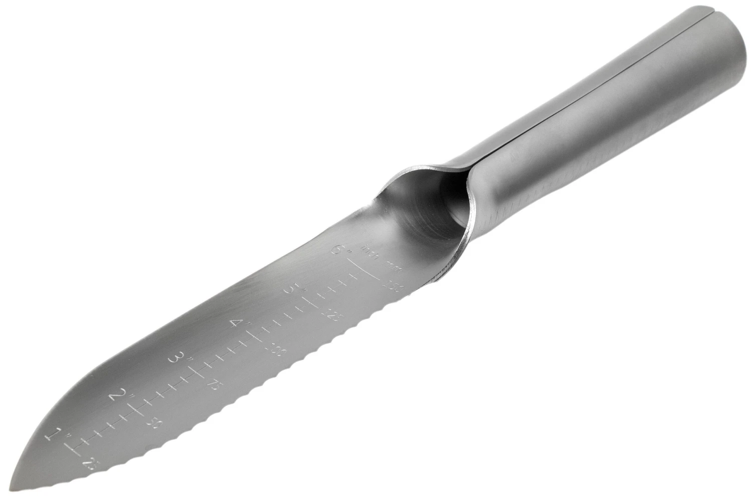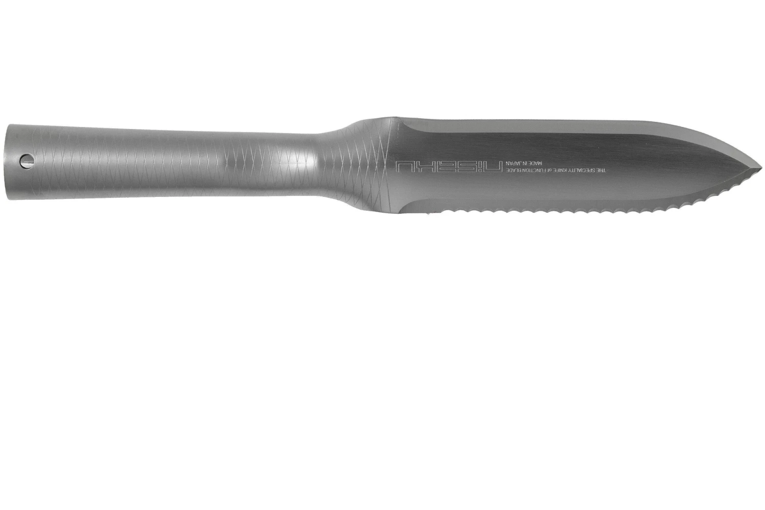 Das Nisaku Hori Hori 6800 ist ein hochwertiges Gartenmesser, das nach japanischer Tradition aus einem Stück rostfreiem Stahl gefertigt wird. Der große Vorteil dieser Konstruktion ist, dass das Messer extrem stabil ist. Der rostfreie Stahl bleibt lange scharf und rostet nicht schnell. Der Griff hat eine kreuzförmige Struktur, was einen guten Halt bietet. Der Griff ist eher dick. Dieses Gartenmesser ist also nicht die beste Wahl, wenn Du kleinere Hände hast. Das Hori Hori 6800 wird mit einem hochwertigen Lederholster geliefert.