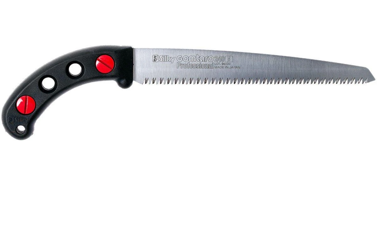 Die Silky Gomtaro ist eine handliche, feststehende Baumsäge. Damit können Bäume und Sträucher geschnitten werden. Da es eine feststehende Säge ist, musst Du Dir keine Gedanken machen, dass sie zuklappen könnte. Ein solches feststehendes Modell ermöglicht es Silky auch, die Form und die Proportionen zwischen dem Griff und dem Blatt perfekt abzustimmen. Manche sagen, die Gomtaro sägt dadurch noch besser.